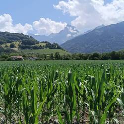 Als ich diesen verließ, wusste ich noch nicht, was mir blühte: Stupides gerade aus laufen durch die Hitze ohne Schatten auf Asphalt. Meine Blasen nahmen ungeahnte Größen an. Bloß nicht Halt machen, dann tut alles nur noch mehr weh .. Ja, der zweite und dritte Tag sind die schlimmsten! Ich hab noch den Schlenker nach Yvorne mitgenommen, ich wollte nicht weiter gerade aus bis Aigle laufen. Als ich ankam, hab ich mich erstmal ins Bett gelegt, ehe ich essen gehen konnte. Und da habe ich das falsche ausgesucht. Naja. Jetzt hoffe ich, ich kann morgen besser laufen und dass es nicht mehr so viel Asphalt gibt!