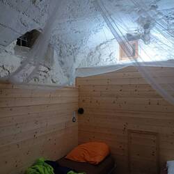 Auch wenn wir gestern Abend nicht mehr so viel zu Essen bestellt haben, es war genug. Die Bruschetta war ok, aber kein Vergleich zu jener meines Bruders! Heute morgen in der schönen Unterkunft hatten wir zwei Kaffee, dann am Augustus-Tor ein vorher gekauftes Frühstück, Focaccia. Es sollte ein langer Tag werden. Erstmal ging es über Asphalt zu einer Burg, der Weg daran vorbei war aber wegen Bauarbeiten gesperrt, so dass wir einen Umweg über einen Berg mit über einer Stunde extra in der Hitze gehen musste. Absolute Hitze, um die 36 Grad im Schatten. Und sehr viel Asphalt. Völlig durstig kamen wir um kurz nach eins an, das Bier schmeckte hervorragend erfrischend. Nachdem wir zunächst erfolglos eine Übernachtung gesucht hatten, gingen wir in ein von Google Maps empfohlenes Lokal. Da saß eine alte Frau vor dem "Restaurant" und führte uns in ein museumartiges Zimmer. Wir hatten das Gefühl, dass wir für immer ihre Gefangene werden würden. Sie wird mästen und dann aufessen, lachten wir. Zudem sollten wir schön die Hände vor dem Essen waschen. Ein Gericht nach dem anderen wurde aufgetischt. Eine Vorspeise, zwei Vorspeisen, danach überbackene Auberginen und dann Pasta mit selbstgemachter Tomatensauce und als Hauptgericht Fleisch. Dann konnten wir im bed and breakfast einchecken und Siesta machen.Read more