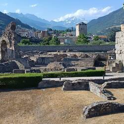 Aosta hat überall interessante römische und mittelalterliche Architektur zu bieten. Sie war unter Kaiser Augustus eine Militärkolonie (Augusta Praetoria). Vieles der heutigen, christlichen und zivilen Bauten wurden auf römischen Vorbauten aufgebaut. In der Übergangszeit von der Antike zum Mittelalter fiel die Stadt unter ostgotische, byzantinische und langobardische Herrschaft. Auch hier, wie in Saint-Maurice, übten danach die Grafen von Savoyen im Aosta-Tal ihre Macht aus. Mehrmals über Hunderte von Jahren wurde das Aosta-Tal von französischen Truppen besetzt.
