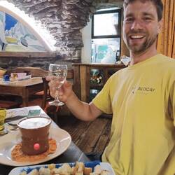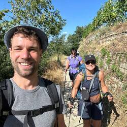 Die erste Etappe war länger als geplant, spontan musste ich nochmal ne Stunde länger laufen, und ein "Zelt" improvisieren... Ergebnis ist eine offene Blase und müde Beine, schließlich waren es ca 26km und 500hm hoch oben in den Weinbergen. Aber wunderschön! Leider habe ich erst um 15:30 Uhr zu Mittag gegessen.