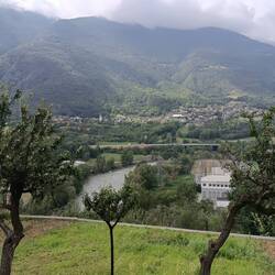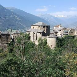 Nach dem Frühstück im dunklen Bed and breakfast sind wir im kühlen Wetter los marschiert -die ganze Nacht und den Morgen hatte es geregnet, eine wahre Wohltat. Dann fiel das viele auf und ab und der häufige Asphalt nicht so ins Gewicht. Unterwegs kehrten wir nicht ein und waren um kurz nach 12 bereits in Châtillon. Nachdem uns Pater Stefano leider keine freien Plätze zum Schlafen anbieten konnte, sind wir in ein Hotel ins Familienzimmer, absolut bezahlbar. Dort haben wir ein Mittagessen eingenommen und gehen nach der Siesta nochmal in die Stadt.