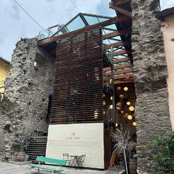 Von dem Frühstück habe ich eine Banane und einen Apfel eingepackt, gut, wie sich später herausstellen sollte. Heute bin ich mit den anderen Pilgern um 07:45 Uhr los gestiefelt. Der Weg führte am Fluss entlang und über sehr schöne Dörfer mit Burgen. Ich bin beide Varianten gelaufen, auch eine gute Entscheidung, da der Hauptweg am Ende an der Straße entlang ging. Ich aber hatte zwar mehr Höhenmeter zu begehen, aber es hat sich sehr gelohnt durch die Weinberge zu laufen. Ich hab endlich Mal gut schlafen können, trotz schlechter Luft im Zimmer und schnarchenden älteren Pilgern. Der eine läuft in die andere Richtung, von Jerusalem über Rom nach Santiago. Er ist seit April unterwegs. Um halb eins war ich in Pont-Saint-Martin und habe die Katalalin getroffen, ein Bier getrunken und bin dann noch 20 Minuten zur Herberge gegangen. Hier ist heute ein Fahrradrennen, ein bekanntes in Italien.