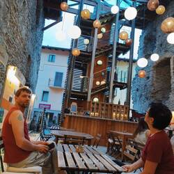 Heute morgen hatten wir unser letztes gemeinsames Frühstück, bevor ich allein den langen Weg nach Verrès angetreten bin. Der Weg führte über schattige Wege und einige Dörfer, fernab der großen Straßen im Tal. Mal am Wasserfall vorbei, dann über Wiesen mit erfrischenden Sprenkelanlagen. Der offizielle Weg ging Mal wieder runter, um dann wieder über schmale,steinige Pfade im Wald wieder hoch zu führen. Oft ist die Route über outdoor active ein direkterer mit weniger Steigungen. Am Schluss ging es steil hinunter und ich wählte nicht den Weg an der Hauptstraße entlang, sondern weiter weg am Fluss. Ich kam direkt an der Herberge an, die weiter unterhalb der eigentlichen Stadt liegt. Da ich Angst hatte, dass ich nach halb drei nichts mehr zu essen bekommen würde, aß ich direkt daneben einem Hamburger. Nach einer Siesta brach ich nochmal zu der Kirche auf, trank ein Bier. Oft bekommt man zum Getränk noch Antipasti (Schinken und Oliven oder Gebäck). Um sieben bin ich mit einer Katalanin zum Essen verabredet, die ich auf dem Camino traf und die im selben Zimmer schläft.Read more
