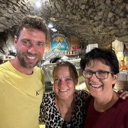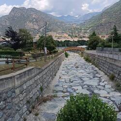 Ich habe das Gefühl wir fressen nur und laufen. Gestern Abend gab es noch das Pilgermenü und heute morgen frisch gemachte Himbeermarmelade und dann ging es lange durch den schönen, kühlen Wald und später stetig bergrunter in das heiße Aosta-Tal. Mittags haben wir uns nochmal ein Menü geholt und hatten noch vier Kilometer über heißen Asphalt bis Aosta. Uns geht's heute gut, wir haben uns eine schöne Ferienwohnung zu dritt gegönnt mit Waschmaschine und Dachbalken. Nach einem kühlen Getränk sind wir uns Aosta anschauen gegangen und essen heute Abend wieder Pasta und Co. Sehr gut, dass wir dabei die Kalorien stetig wieder abbauen....Read more