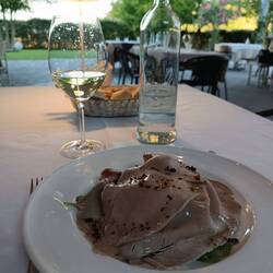 Hier habe ich nur Agnolitti (wie Ravioli) mit einer gemischten Fleischmischung, Spinat und interessanten Gewürzen probiert. Hier isst man sonst noch Trüffel. Und natürlich aufgrund des Reisanbaugebietes Risotto.