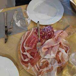 Ja, da kommt der Parmesan her und natürlich wie in jeder Region besondere Schinkensorten wie hier der Parmaschinken. Piacenza ist mir in Erinnerung geblieben mit dem Bohneneintopf mit kleinen Gnocchi und dem Pferde-Tartar. Lasagne kommt von hier und auch der vitello tonnato ein Klassiker. Auch typisch sind frittierte Säckchen ohne Inhalt, ähnlich wie Fried Jack, das zu Schinken und Salami und Käse als Antipasti serviert wird.