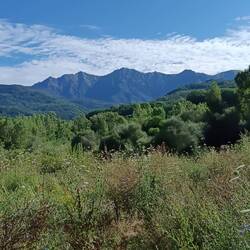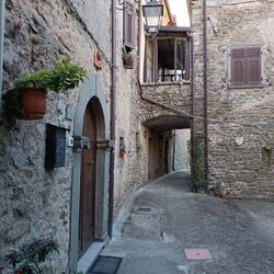 Nun weiter zum heutigen Tag. Erstmal ging es ein paar Kilometer durch Industrie an der Straße entlang, dann durch schöne Feldwege, wo ich mich mit zwei an meiner Reise interessierten Herren unterhielt, schöne Aussicht auf die umliegenden Berge (Apuanische Alpen), durch sehr alte , unheimlich schnuckelige Dörfer, die ich mir genau angeschaut habe, und schließlich sehr viel durch den Wald. Während ich für die ersten 10 Kilometer eine halbe Ewigkeit gebraucht hatte, waren die letzten, da durch den Wald wenig Ablenkung war, zügiger. Trotzdem haben meine Füße diese ca 32km mit einigen Steigungen gemerkt.