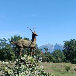 Später ging es den Berg hinauf in den Wald, was zwar mit der Hitze anstrengend, aber sehr schön und ruhig war. Nur gerne hätte ich mich Mal ausgeruht, um Wasser zu trinken, was aber mit dem um den Kopf herum schwirrenden Fliegen und Mücken selten möglich war, da komme ich mit immer vor wie eine arme Kuh auf der Weide, die immerzu von allen Insekten nonstop belästigt wird
