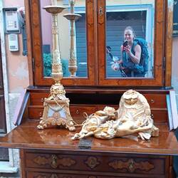 Das Wort cameo ist ein Wort, das ich aus den Filmen von Hitchcock kenne. Aus Mangel an Statisten hat er sich oft selbst im Hintergrund platziert, es gibt geradezu cameo-Jäger, die alle Filme nach dem persönlichen Auftritt in seinen Filmen durchsuchen. Ich bin so frei und benutze dieses Wort für meinen "Auftritt" in Florenz, ich habe erst aus der Situation heraus und dann gezielt Spiegel und ähnliches gesucht, die mich in verschiedenen "Szenen" in Florenz zeigen, manchmal muss man genau hingucken. Mir hat es sehr viel Spaß gemacht und oft lachte ich laut in einem leeren Museumsraum, den sonst niemanden interessierte. Manchmal kamen dann Aufseher und wunderten sich, was ich da in dem Raum so lange mache...Lue lisää