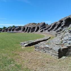 Irgendwie bin ich nicht durch das römische Dorf gelaufen, wie ich später erfuhr. Bin ich vielleicht den Fahrradweg gelaufen, ohne es zu merken? Jedenfalls habe ich wenigstens das Amphitheater angeschaut. Und nach einem Cappuccino entschieden, weder den Weg morgen an der Küste zu laufen statt über Massa, noch in Avenza den heutigen Tag zu beenden. Weise Entscheidungen. Ich war um eins in Avenza, ich weiß nicht einmal, wo da die Innenstadt war. Dort habe ich in einem Familien-Restaurant sehr leckere grüne Pasta mit Ragout gegessen. Und um zwei ging ich weiter, der Weg war oberhalb der Stadt, ich sah die ganze Zeit die Stadt und das Meer und die umliegenden Weinberge. Wirklich ein lohnenswerter Weg! Um fünf war ich bereits in Massa, den Dom anschauen und endlich, endlich (!) konnte ich meine gesamte Wäsche in einer Waschmaschine waschen! Welch Freuden als Pilger man doch hat! Zu Hause ist das selbstverständlich, auch eine warme Dusche ist wirklich ein Luxus. Das hatte ich zwei Monate in Lateinamerika überhaupt nicht.