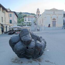 Vor Pietrasanta waren so Eisenträger auf Schienen, die für die schweren Marmorblöcke als Transportmittel dienen. Hier nämlich, in den benachbarten Apuanischen Alpen, wird der Duft Michelangelo berühmte und auch viel in Rom schon von den Römern verwendete Carrara-Marmor abgebaut.