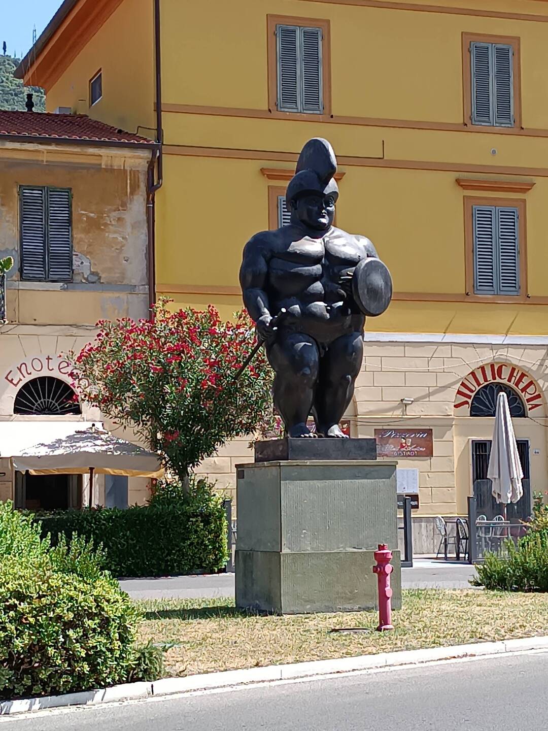 Später haben wir einen weiteren Pilger getroffen und liefen zu dritt, und schließlich haben wir in Pietrasanta den italienischen Pilger von vorgestern getroffen. Wir aßen Focaccia zu Mittag und sie gingen weiter bis Cammiore. Ich wollte ja unbedingt an den Strand, meine einzige Möglichkeit im Sommer noch im Meer zu baden.