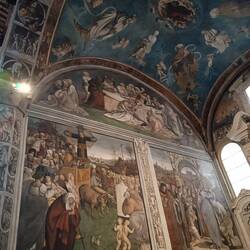 Danach war ich im Dommuseum (ich musste meinen Rucksack aufbehalten) und habe mir die mittelalterlichen Fresken im Dom angeschaut. Es war so heiß und ich hatte keine Lust auf mehr Sightseeing. Ich wollte doch auch wissen, wohin ich muss und wo ich übernachten kann. Also setzte ich mich in eine Bar und versuchte irgendeine andere Herberge zu finden. Endlich nahm jemand das Telefon ab und ich hatte einen Platz, musste aber mit dem Bus hinfahren. Genau dann rief der Mann von der anderen Herberge, die viel näher war, an, ich wollte aber nicht so unhöflich sein und der gerade zugesagten Herberge wurde absagen. Das Ticket für den Bus wollte ich im Bus lösen, der Busfahrer sagte,es gäbe hier keine und ich stieg an der nächsten Bushaltestelle wieder aus, um mir dort ein Ticket für den nächsten Bus zu kaufen ..