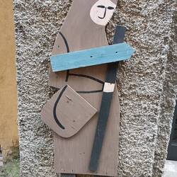 Foto 8: Medusa von Michelangelo Merisi da Caravaggio auf einem Holzschild (ausdrucksstarkes Entsetzen)