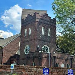 Walking tour of Norfolk cannonball trail included the cannonball embedded in the church wall, MacArthur Memorial, and Taiwanese Pagoda.