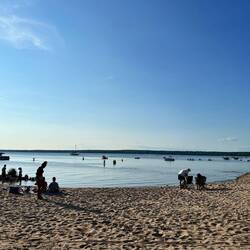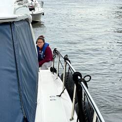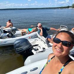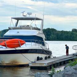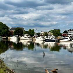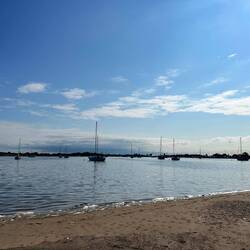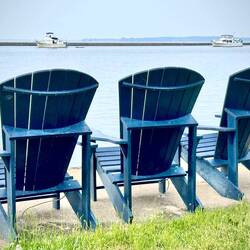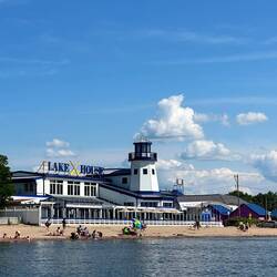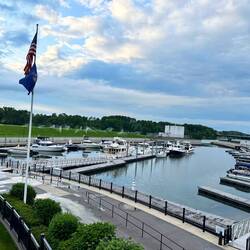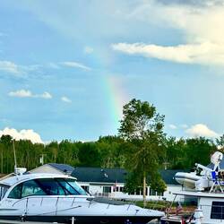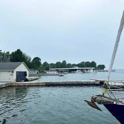 Anchored in the harbor. During the day there were jet skiers and water tubers. We jumped into the water to cool down. In the evening we were surrounded by fireworks for Canada Day and 4th of July.