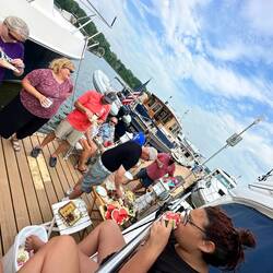 Donovan’s Shady Harbor Marina in New Baltimore hosted a Great Loop gathering with live music, tastings, bon fire, and pig roast. Over 40 looper boats were in attendance.