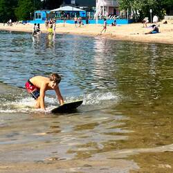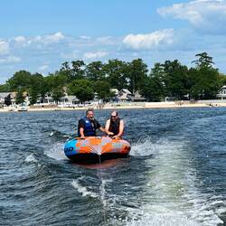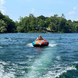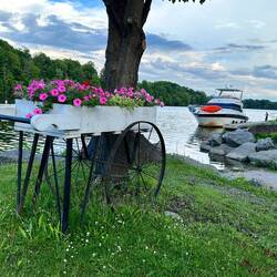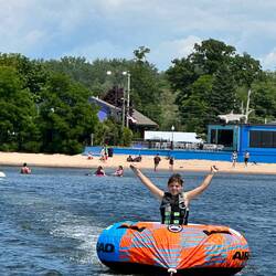 Another day of locks with a sports theme. We arrived in Sylvan Beach on the free wall which was walking distance to the beach. Matt bought a water tube so one day we did a dinghy raft and went tubing.Læs mere