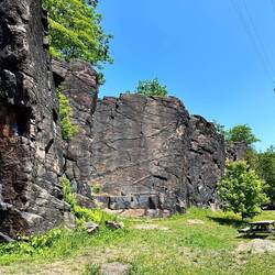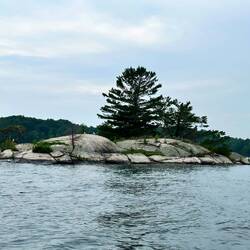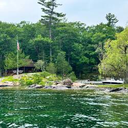 Anchored in the Thousand Islands on the east side of Grindstone Island. Anchorage is next to the state park that has a camp ground and gazebo.