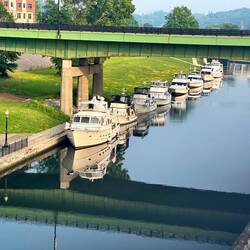 We spent the day going through locks E-2 through E-7 taking us from Waterford to Schenectady. The first five locks were all in a row, each being 35 feet high.