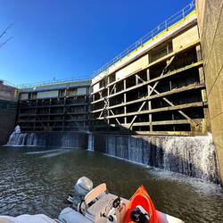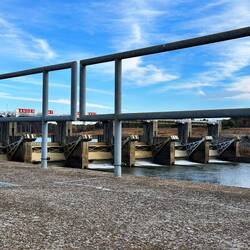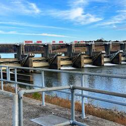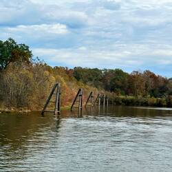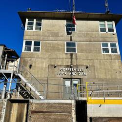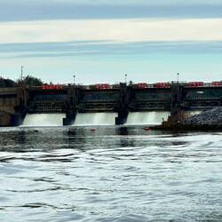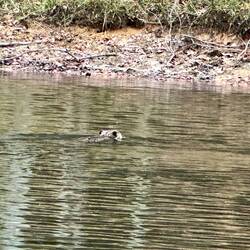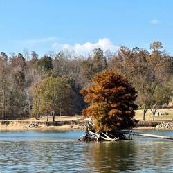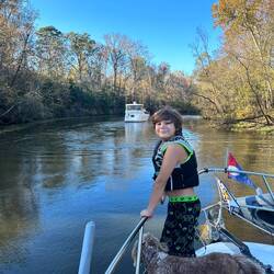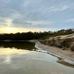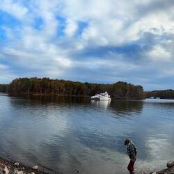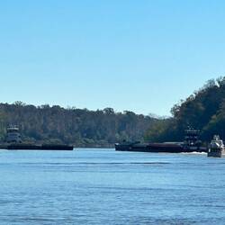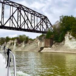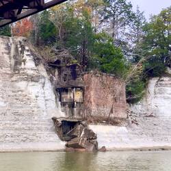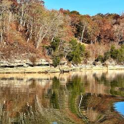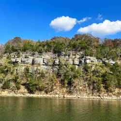 We passed through a lock with a lovely waterfall from a dam and headed for a few hours by some pretty cliffs. The trip was along a windy part of the Tombigbee river where is was particularly shallow.Læs mere