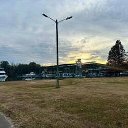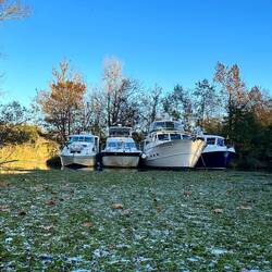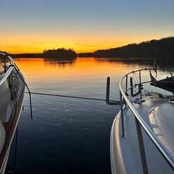 We dropped anchor before the lock and before Fulton not far from the Midway Marina. The sunset was stunning for Veterans Day. Unfortunately the next morning we lost our anchor. We tried searching forLæs mere