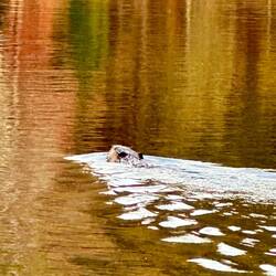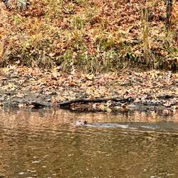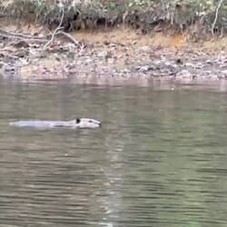 We anchored before the lock in a nice bay. There were many offshoots of pools for other boats. Michael and I took the dinghy out and spotted a beaver swimming.