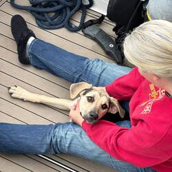 It was a long day of boating with two locks. The first lock is our 100th lock on the loop. I had to help out on Legacy. We arrived late at the anchorage and had just enough time to take Flash to shoreLæs mere