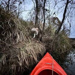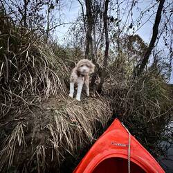 We traveled a long ways to find anchorage. Our original plan did not pan out as the river level is low and we couldn’t enter the streams. We finally found a spot next to a small island.
