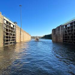We passed through our final lock on the Great Loop. This was our 104th lock. So happy to be done. After anchoring, we popped open a bottle of champagne to celebrate.