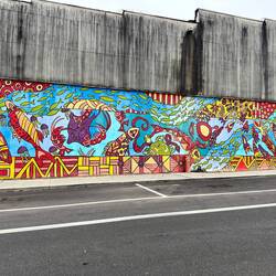 Paducah is a walled town to prevent flood waters from entering the town. The inside wall is decorated with lovely murals depicting the history of the area.