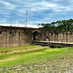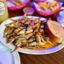 We arrived in the early afternoon, passing under the Dauphin Island Bridge and by some oil rigs. The marina was simple but accommodated us and across the parking lot was a restaurant with deliciousLæs mere