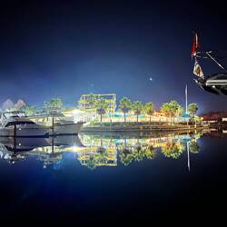 We boated for 13 hours in rolling waters. Saw the sun set and moon rise. After a long cold day we found a spot to anchor for the night.