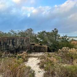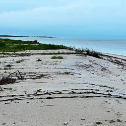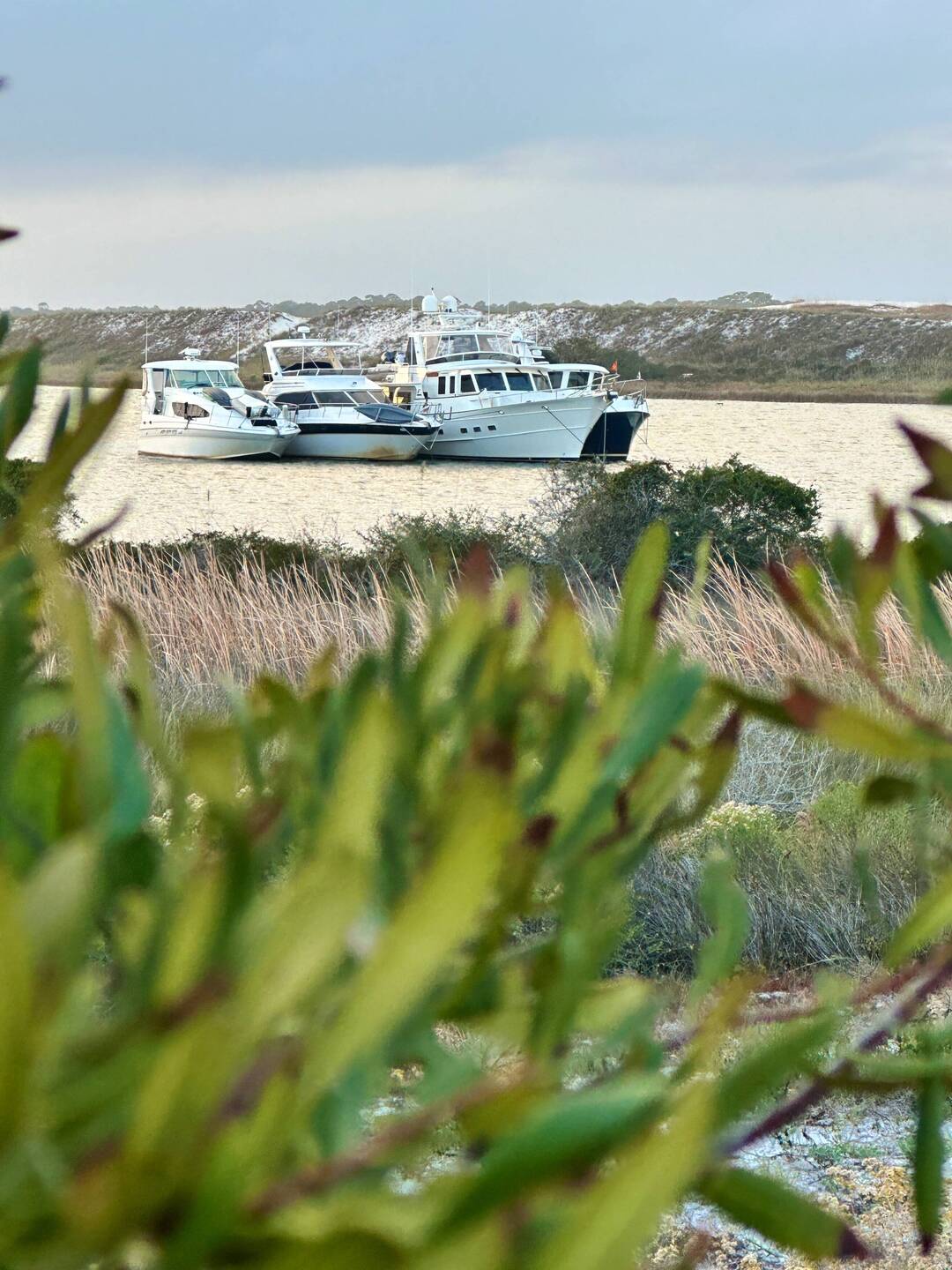 Wonderful anchorage between sand dunes and the remains of a fort. Wonderful walk along the sand and water. Spotted dolphins playing in the water.