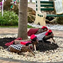 We anchored again in Pelican Bay and took the dinghy over to Boca Grande. There they have the Pink Elephant restaurant which served tasty food and had cute decorations.