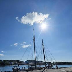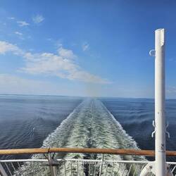 Was für ein Wetter nur der Blaue Himmel und die Sonne....Auf zur Fähre..Um 10 Uhr muss man da sein um dann um 13 Uhr an Bord zu kommen...Und das bei dem Wetter ....Kein Schattiges Plätzchen auf demLäs mer