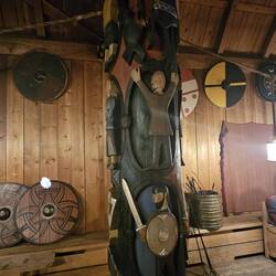 Kleine Ausstellung von Exponaten in Vitrinen...und draußen in einer Parkähnlichen Anlage. Hier soll ein Vikingerdorf gewesen sein. Alleine die Vorstellung fällt mirLäs mer