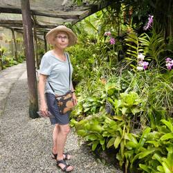 The afternoon before our flight we toured for 5 hours with a driver and guide. Local market in Nadi was first. Then a drive by a famous Hindu Sri Siva Subramaniya temple. A nice man told us all about why it was closed this week to visitors. Lunch at a local place, then the orchids at the Botanical gardens (built by Raymond Burr). Then a tour of a historic Fijian village that boasts the number of prime ministers and other top officials that hail from there (and singing!).