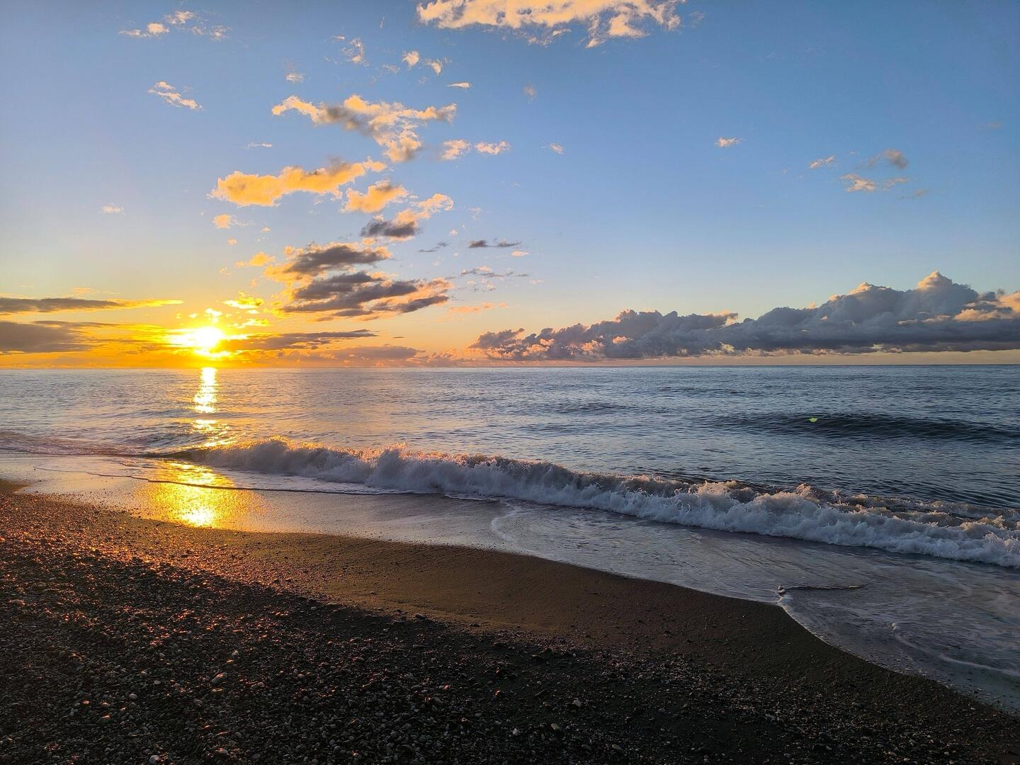 Heute morgen haben Jimmy und Thomas den Strand erkundet und einen tollen Sonnenaufgang erlebt...endlich schönes Wetter