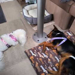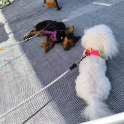 Heute der erste Ausflug mit beiden Hunden. Es klappte viel besser als erwartet, bzw es war völlig problemlos.