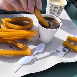Heute ging's nach El Campello auf den Markt. Wir lieben es. Auf dem Markt unsere geliebten Churros mit Coco und ein Café con Leche.