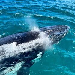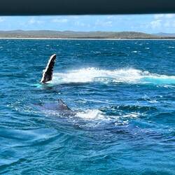 War mega. Haben so 3-4 Walgruppen gesehen. Einige davon sehr nah am Boot. Wahnsinns-Erlebnis. Jetzt geht es gleich weiter nach Brisbane.