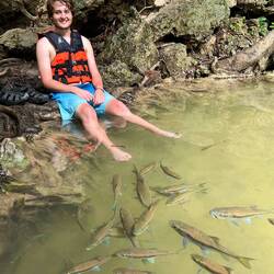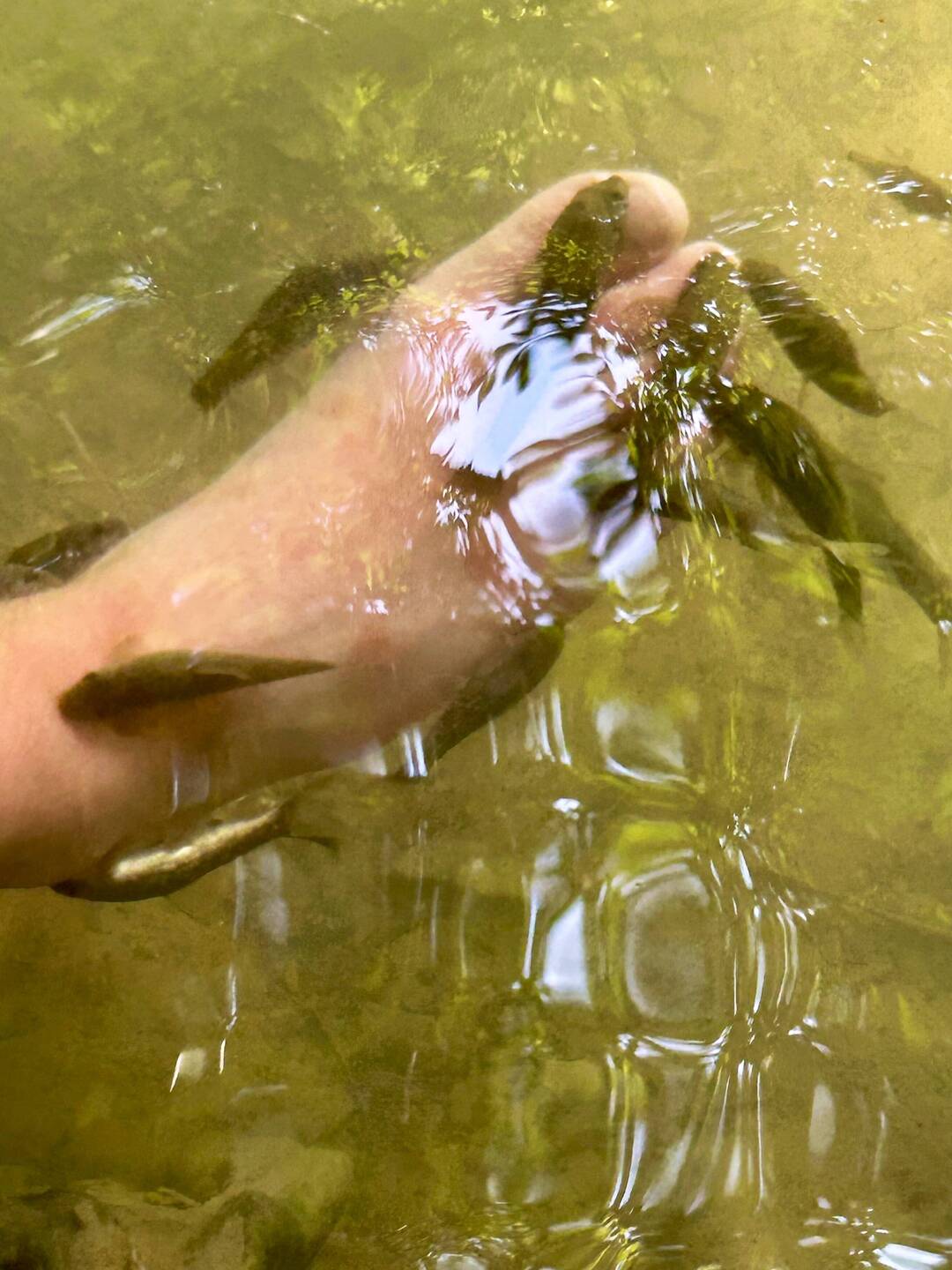 At the waterfall, there are lots of little fish that will give you a pedicure for free.