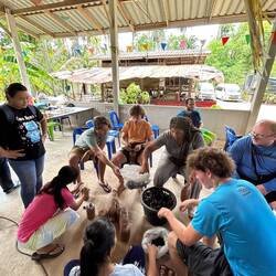 The students are at a very rural family farm where they produce mushrooms. Right now, in town, they can get 100 baht per kilogram, which is a bit less than three dollars for 2.2 pounds. The studentsRead more