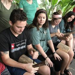 We stayed in a funky hostel in Uvita. The shared bathrooms freaked students out just a bit, but they quickly adjusted. Chase used a pool cue to harvest some star fruit from the tree in the courtyard.