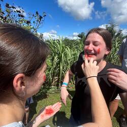 We had a great time spending half a day in this rural community. Students tried sugarcane, opened coconuts, painted their faces with achiote, fed the chickens, and learned a little about cacao. I amRead more