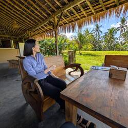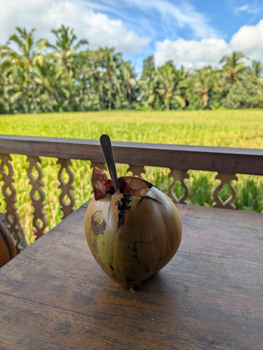Paramos a comer en un Warung que nos encontramos en el camino. Muy bonito lugar, muy sereno. La señora del lugar me dijo "quieres coco fresco?" Y fue a cortarlo de la palma luego luego 😆 todo bienRead more