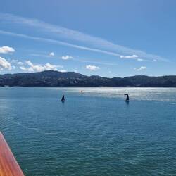 Heute bei wunderschönem Wetter die Wellingtoner Bucht verlassen und in die Cookstraße eingebogen, die die Nordinsel von der Südinsel trennt.