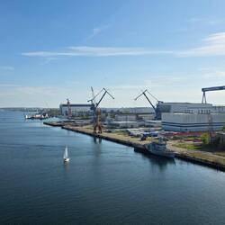 Heute früh liefen wir im Industriehafen von Gdynia ein. Direkt neben uns das berüchtigte Kohlelager, aber wir hatten kaum Wind, also kein Problem.