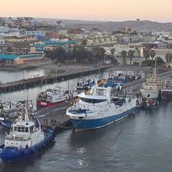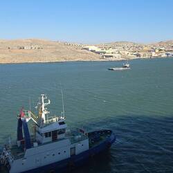 Gestern haben wir schon relativ früh (17 Uhr) in Lüderitz abgelegt, so konnte man noch schöne Fotos beim Auslaufen machen.